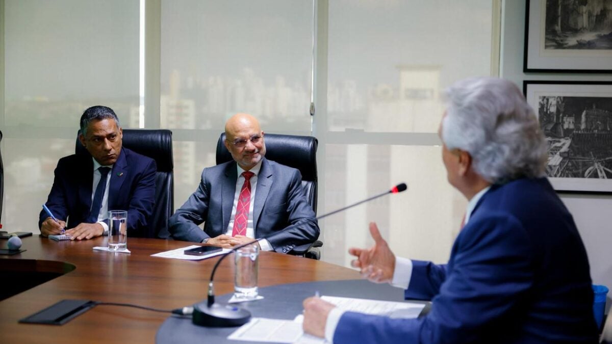 O governador Ronaldo Caiado (UB) recebeu, segunda-feira (15), o novo embaixador da Índia no Brasil, Dinesh Bhatia, para reforçar a aproximação entre Goiás e o país asiático. O encontro, realizado no Palácio Pedro Ludovico Teixeira, teve como foco central a articulação de parcerias iniciadas em fevereiro, durante missão oficial ao território indiano. No centro da conversa esteve o potencial de Goiás na exploração de terras raras.